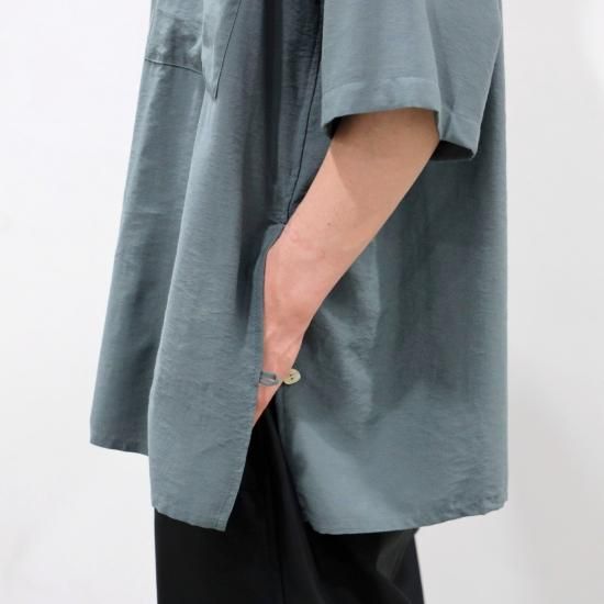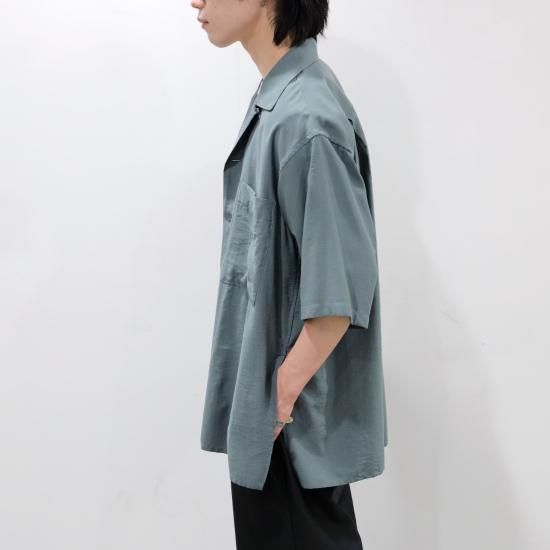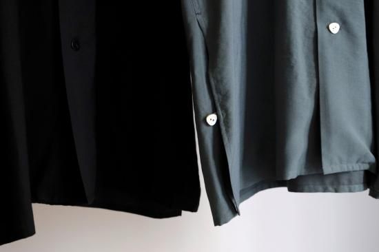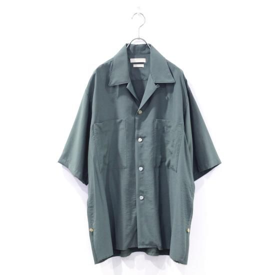 YOKE / WIDE FIT OPEN COLLAR SHIRT(DUSTY GREEN)