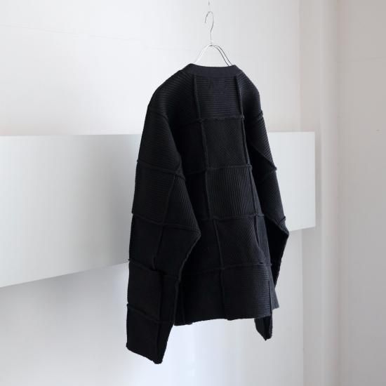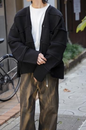 YOKE / PATCHWORK RIB BUTTONED CARDIGAN(BLACK)
