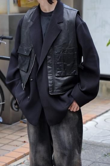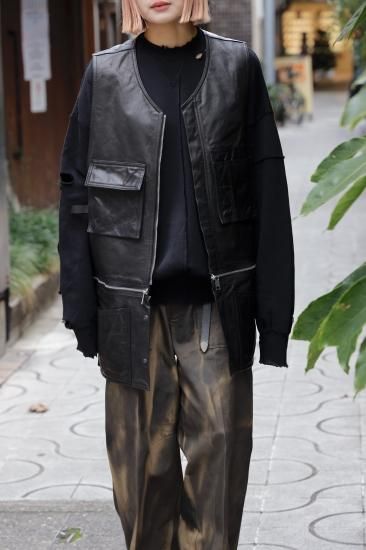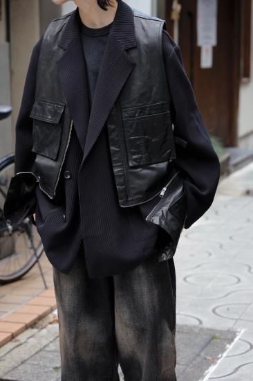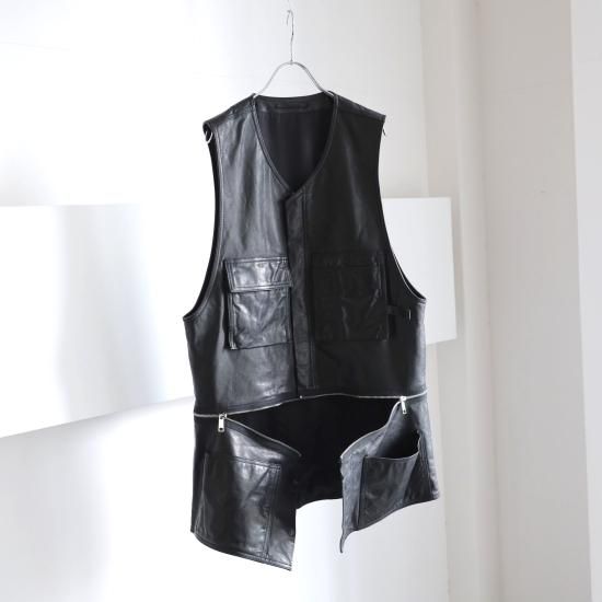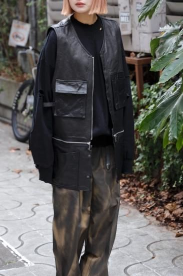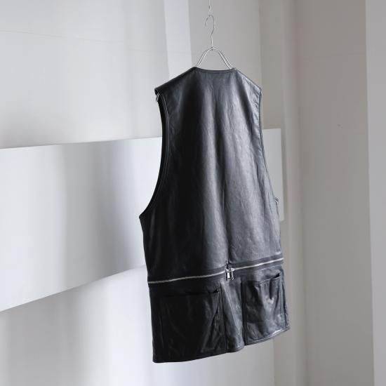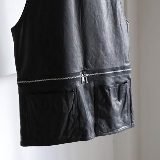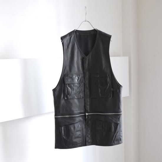 YOKE / GOAT LEATHER LONG VEST(BLACK)