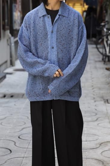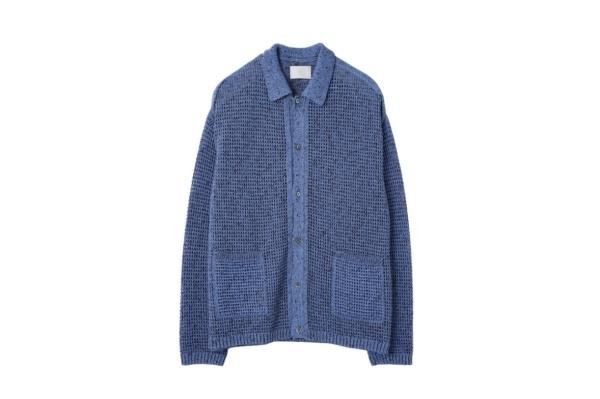 ブランドの人気プロダクトの1つ、メッシュニットシリーズの24SS新作・メッシュニット襟付きカーディガン