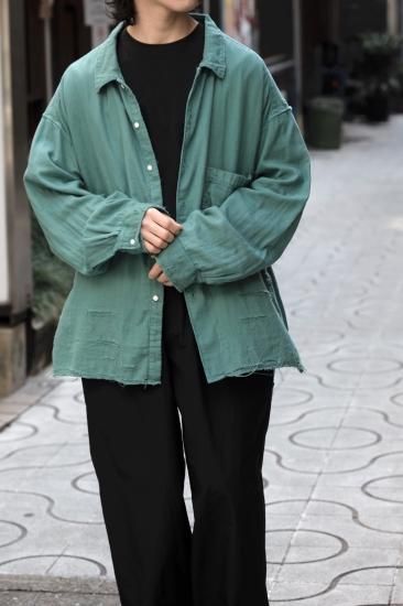 エイジング加工、ダメージの表情、上品なダブルガーゼ生地が特徴的なシャツ