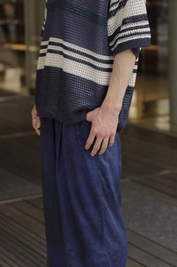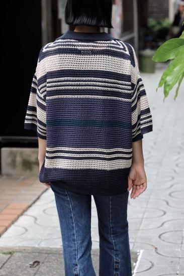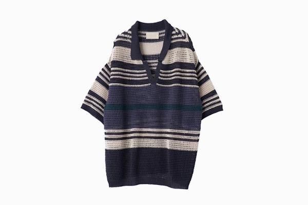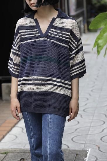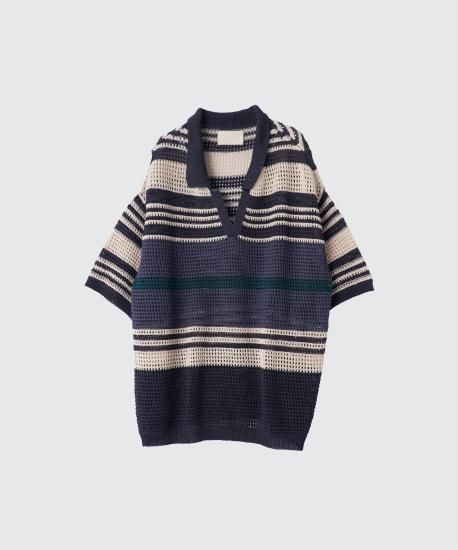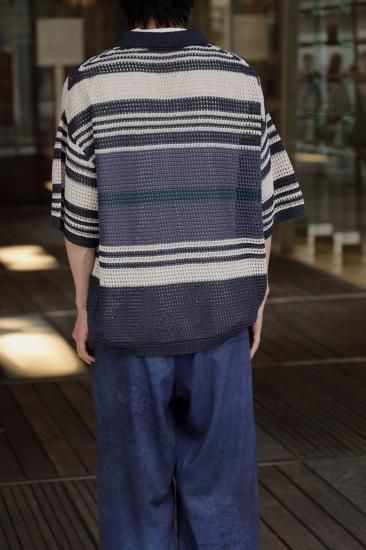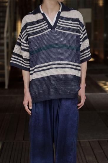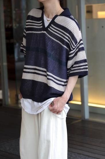YOKE / BORDER MESH KNIT SKIPPER POLO SHIRT(NAVY×BEIGE)