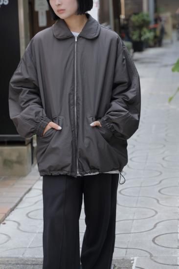 襟部分にマチを施した中綿コーチジャケット