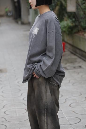 特殊な染め、エイジング加工、ダメージの表情が特徴的なエイジングロングスリーブTEE
