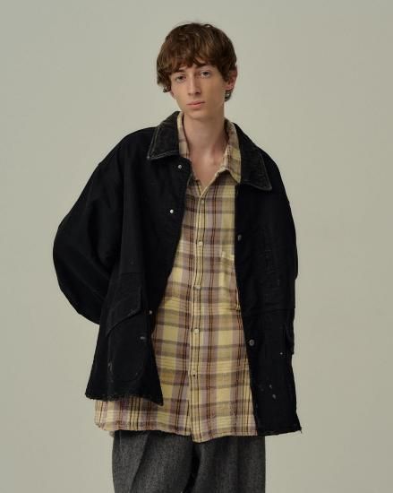 衿はコーデュロイにしコントラストを、またブランドらしいフェード・ダメージ・ペイントを施し深い奥行きある表情に仕上がっております。