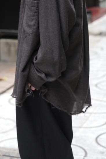 細部に施されたダメージ加工、軽快なウールで作製されたリラックスシルエットのシャツ