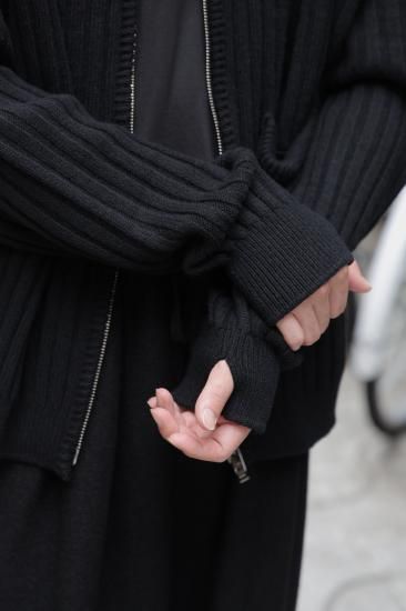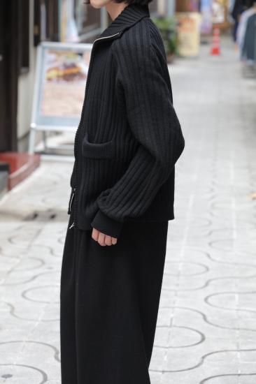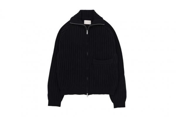 YOKE / Wide Rib Highneck Zip Cardigan(BLACK)