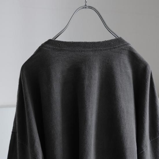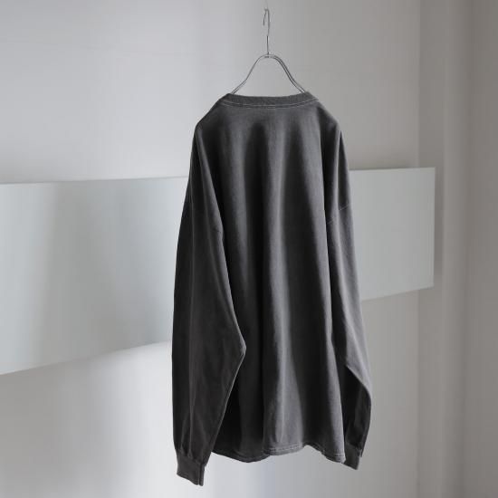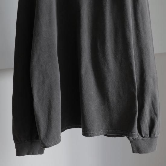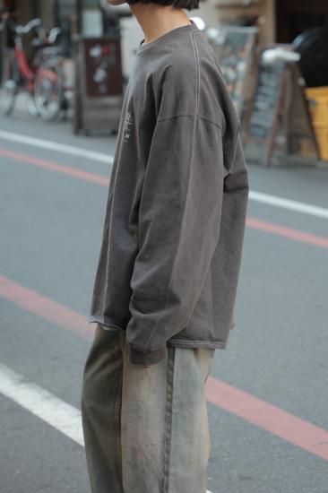 掠れたプリント、特殊な染め、エイジング加工、ダメージの表情が特徴的なエイジングプリントロングスリーブTEE
