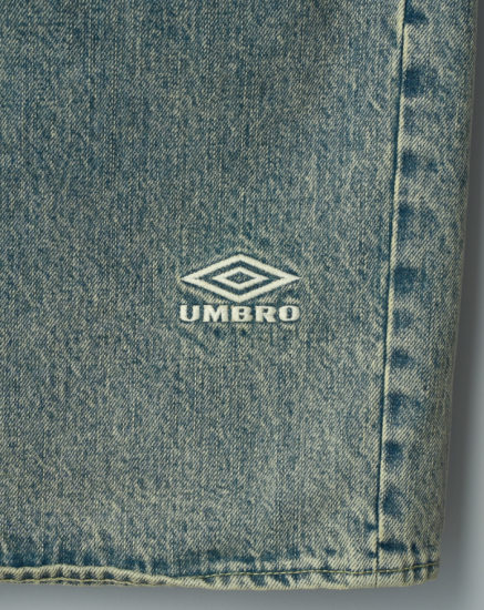 ssstein × UMBRO のカプセルコレクションアイテム・デフォーメーションワイドデニムパンツ