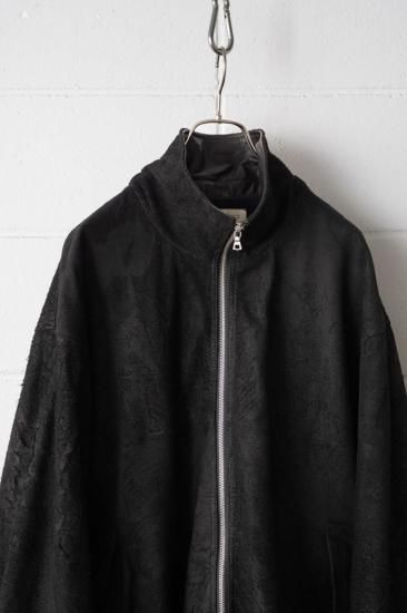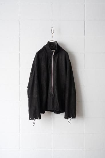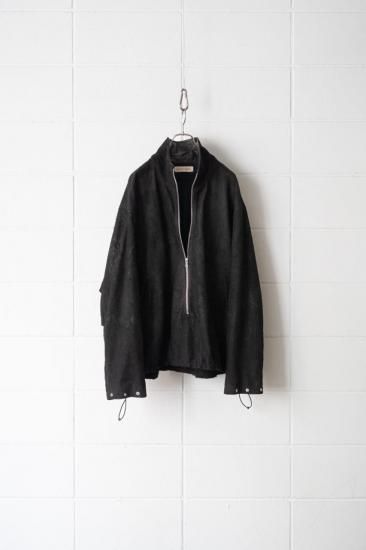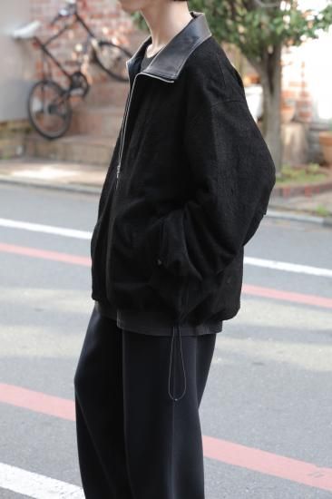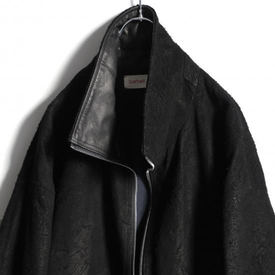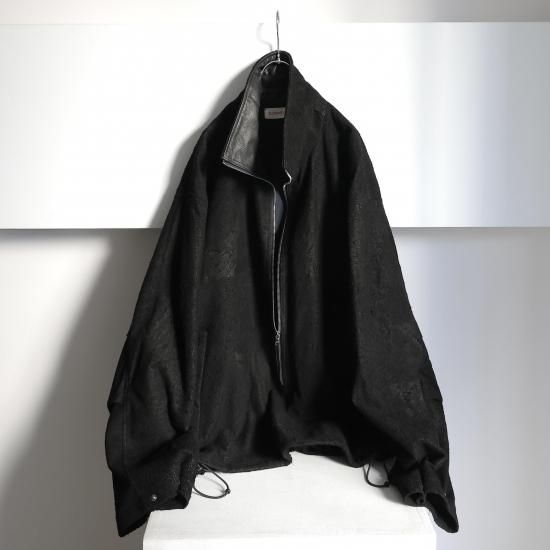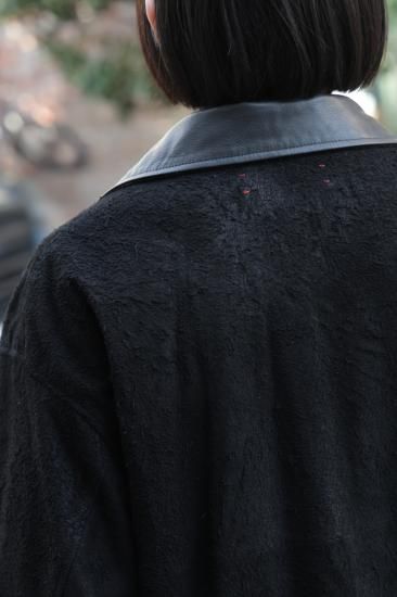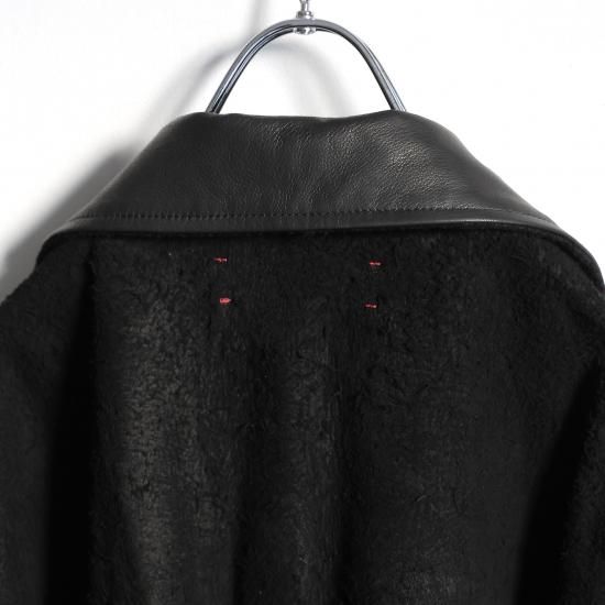 カンガルーレザーを使用し粗野な風合いを残しつつも軽くブランドらしいムードある1点、襟部分には山羊革を施し少しのアクセントを。